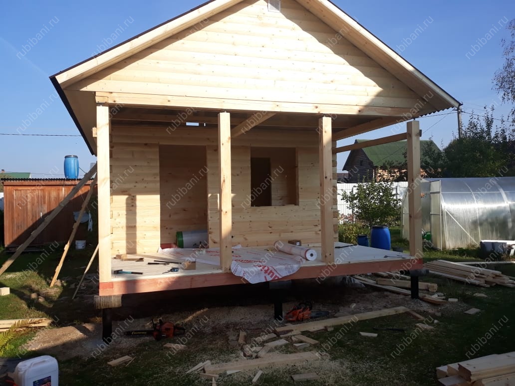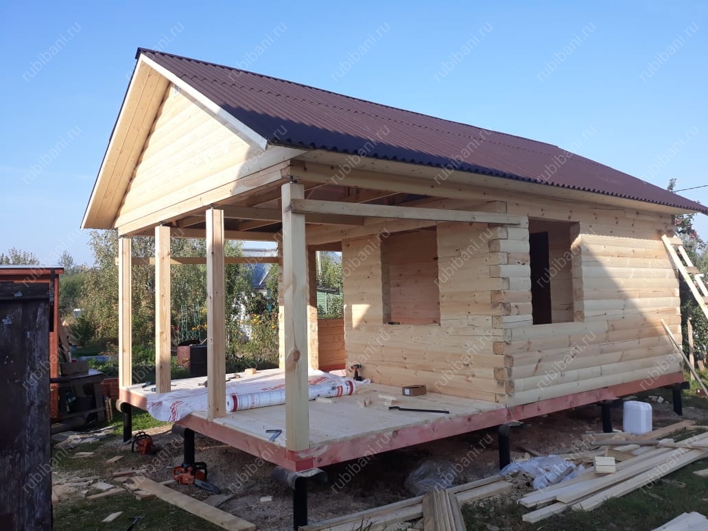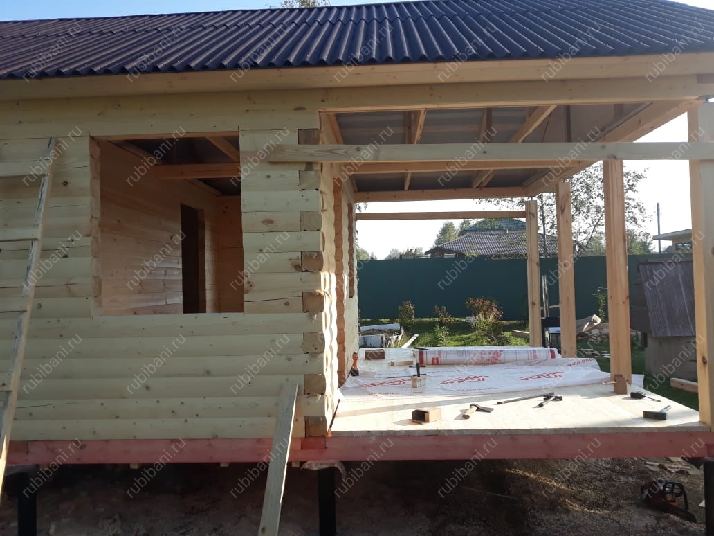 Баня из бруса 6 на 4 с террасой