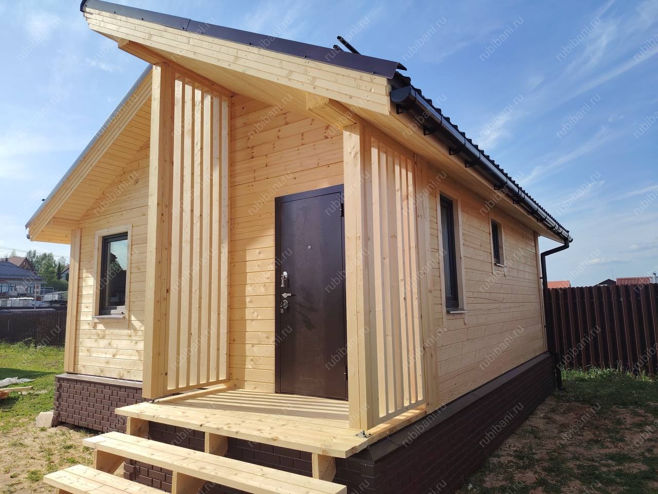 Конструкция выполнена из высококачественного профилированного бруса, обеспечивающего превосходную теплоизоляцию, стабильность геометрии и долговечность. Площадь 36 кв. метров рационально распределена между парной и уютной комнатой отдыха с двумя окнами для естественного света. Визитной карточкой проекта стало элегантное крыльцо, которое превратило входную зону в эффектную архитектурную деталь, задающую тон всему строению и подчеркивающую вкус владельца.